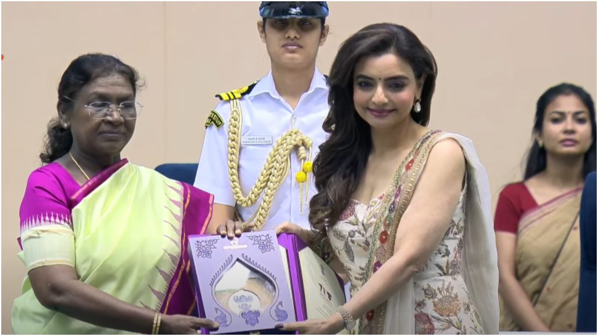 जब कोरियोग्राफर वैभवी मर्चेंट मंच पर अवॉर्ड लेने पहुंची तो शाहरुख खान और रानी मुखर्जी उनकी फोटो खींचते और वीडियो बनाते नजर आए।