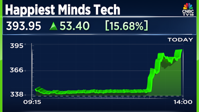Shares of Happiest Minds Technologies are trading 16.81% higher after the announcement at ₹397.80. The stock has nearly halved from its 52-week high level of ₹708, while from its record high levels of over ₹1,500, the stock is down over 70%.