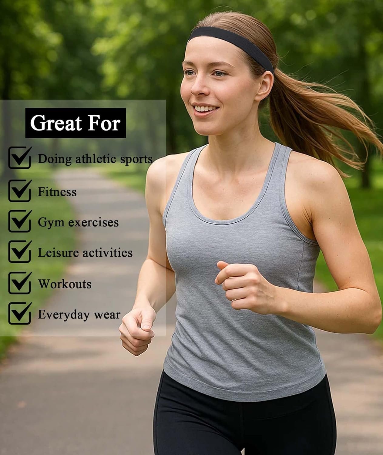Non-Slip Silicone Grip: Features an internal silicone grip to prevent slipping during intense workouts or outdoor activities; The grip technology keeps the headband in place even when sweating; Suitable for gym sessions, running, yoga, and other sports.