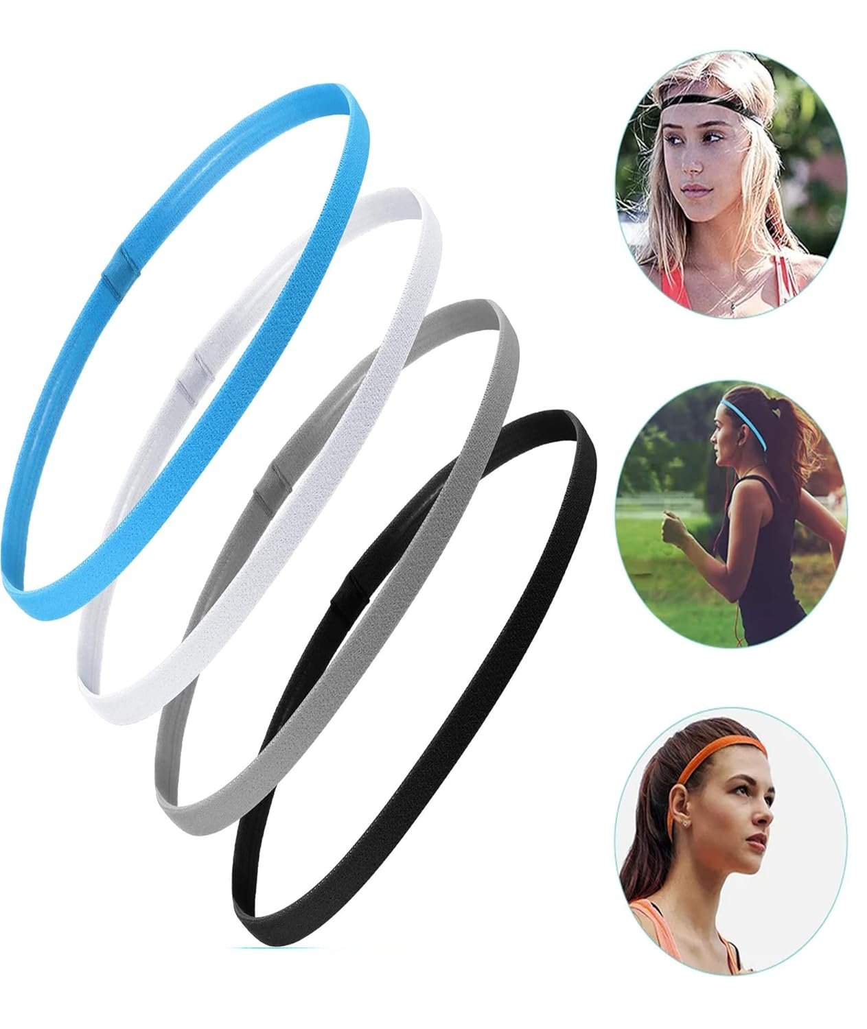 4Pcs Hair Band for Men, Hair Accessories, Head Band for Men Thick and Slim Elastic Sports Headbands – Athletic Skinny Hair for Women Boys Girls Mini Stylish Sweat Hair