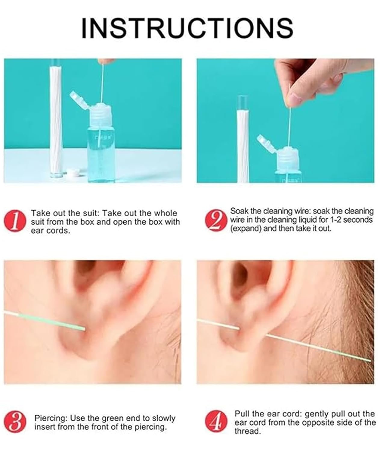 70 Pcs,Ear Piercings,Ear Cleaner Line Cleaning Line, Piercing Earrings Set,Piercing Aftercare Earrings Hole Cleaning Line,Ear Care,Maintain The Health and Cleanliness of Your Ear Piercings