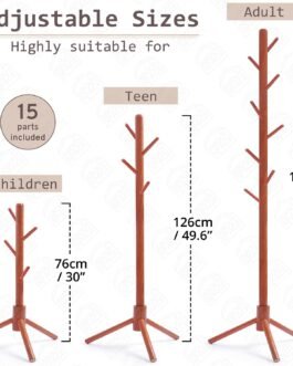 MATERIAL & DIMENSION: The cloth hanging stand is made up of engineered wood and plastic, and height adjustables are 76 cm, 126 cm & 176 cm. With 8 rounded arms will gently hold jackets and bags, plus the unique top knob perfect for stray hats, caps and helmet.