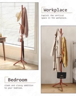 UNIQUE DESIGN: The hanging clothes stand design has rounded hooks for hand and cloth safety, a wood pole, and a sturdy triangular base, giving your home a classy look. The cloth stand for room can be kept in any narrow space according to your convenience.