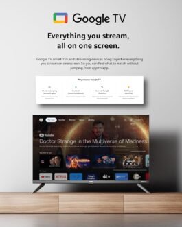 Smart TV Features: Google TV | Content Recommendations | Dual Band WiFi | Bluetooth 5.0 | Casting option- Googlecast, Fastcast, Meeting mode | 1.5GB RAM | 8GB Storage | Watchlist | Personal Profile | Kids Profile | Google Assistant | Voice enabled Smart Remote | Hotkeys for Quick Access – Netflix, Prime Video, YouTube, Disney+Hotstar | Quad Core Processor | Screen Saver |