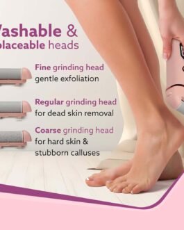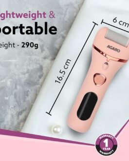 AGARO CR1727 Callus Remover comes with three interchangeable heads. It is IPX6 water proof and Rechargeable It is used for removing callus and dead skin