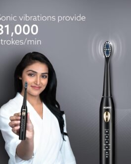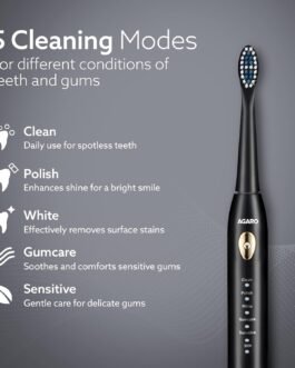 AGARO COSMIC LITE Sonic Electric Tooth Brush For Adults With 5 Modes, 2 Brush Heads & Rechargeable With 4 Hours Charge Lasting Up To 25 Days, Power Toothbrush, (Black)