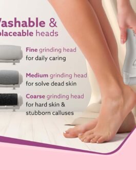 Interchangeable 3 roller heads include fine grinded head, medium grinded head, coarse grinded head for efficiently removal of hard skin and dry dead skin