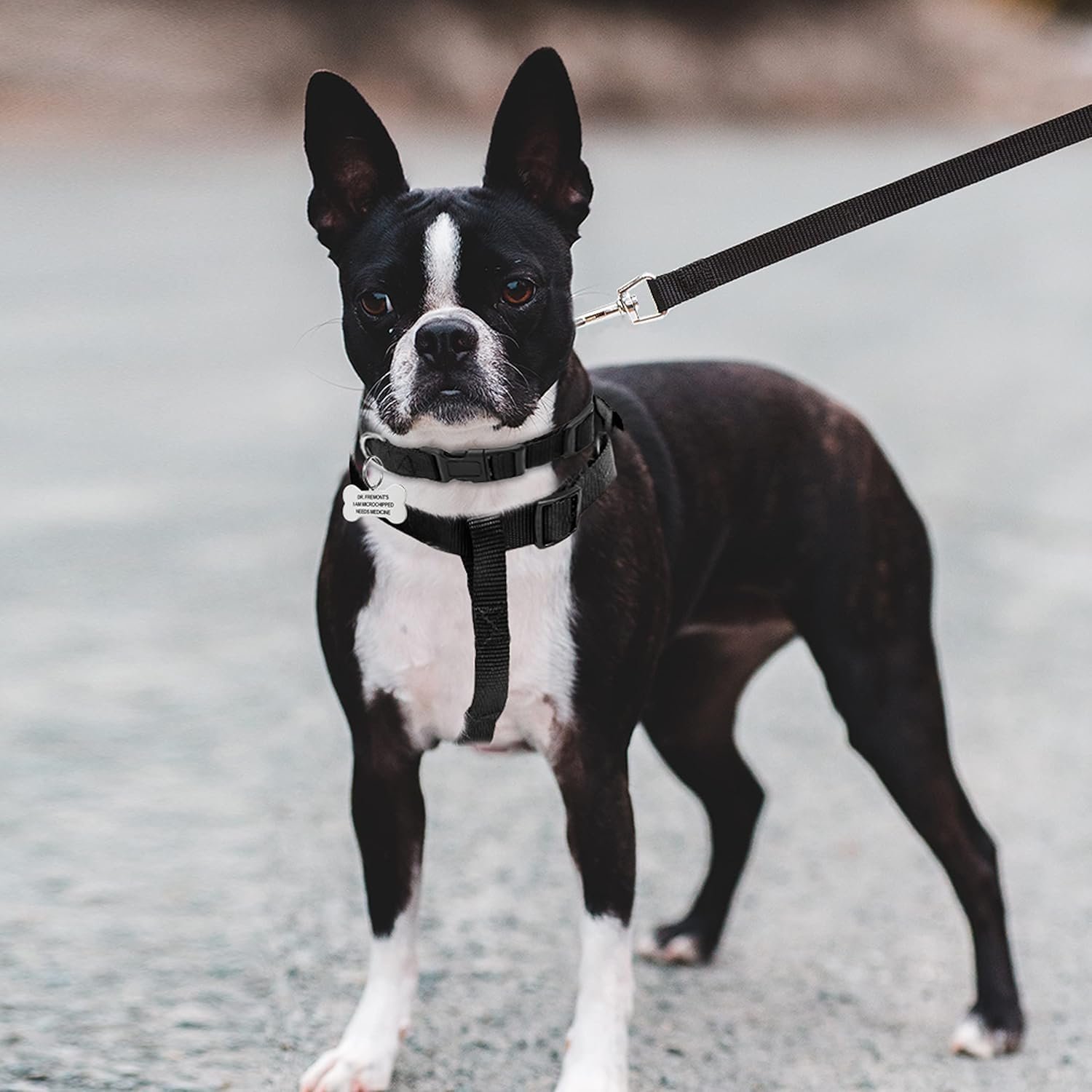 Metal fittings make the dog harness more secure, this dog harness has two welded heavy duty O-rings attached to the nylon straps. Each nylon strap adopts a special figure-8 stitching technology, which will not fall off easily. In addition, the dog harness has a safety buckle that can be quickly closed and securely fastened, and can be quickly released when manually operated, making it easy to put on and take off. Prevent the dog from being frightened and struggling to escape