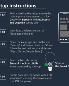 Simple Setup with Alexa: Fit in the light bulb, open the Alexa app, and get started in minutes as you get notified “First light bulb found” Or you can add the smart bulb directly from Alexa app. No hubs or 3rd party apps or skills required. For zero touch set up experience, check “Link device to your Amazon account to simplify setup” during checkout and get started with your smart bulb in no time. Note: Wipro Garnet Simple-Setup Smart Bulb bulbs work exclusively with Alexa to be set up with 2.4GHz Wi-Fi only.