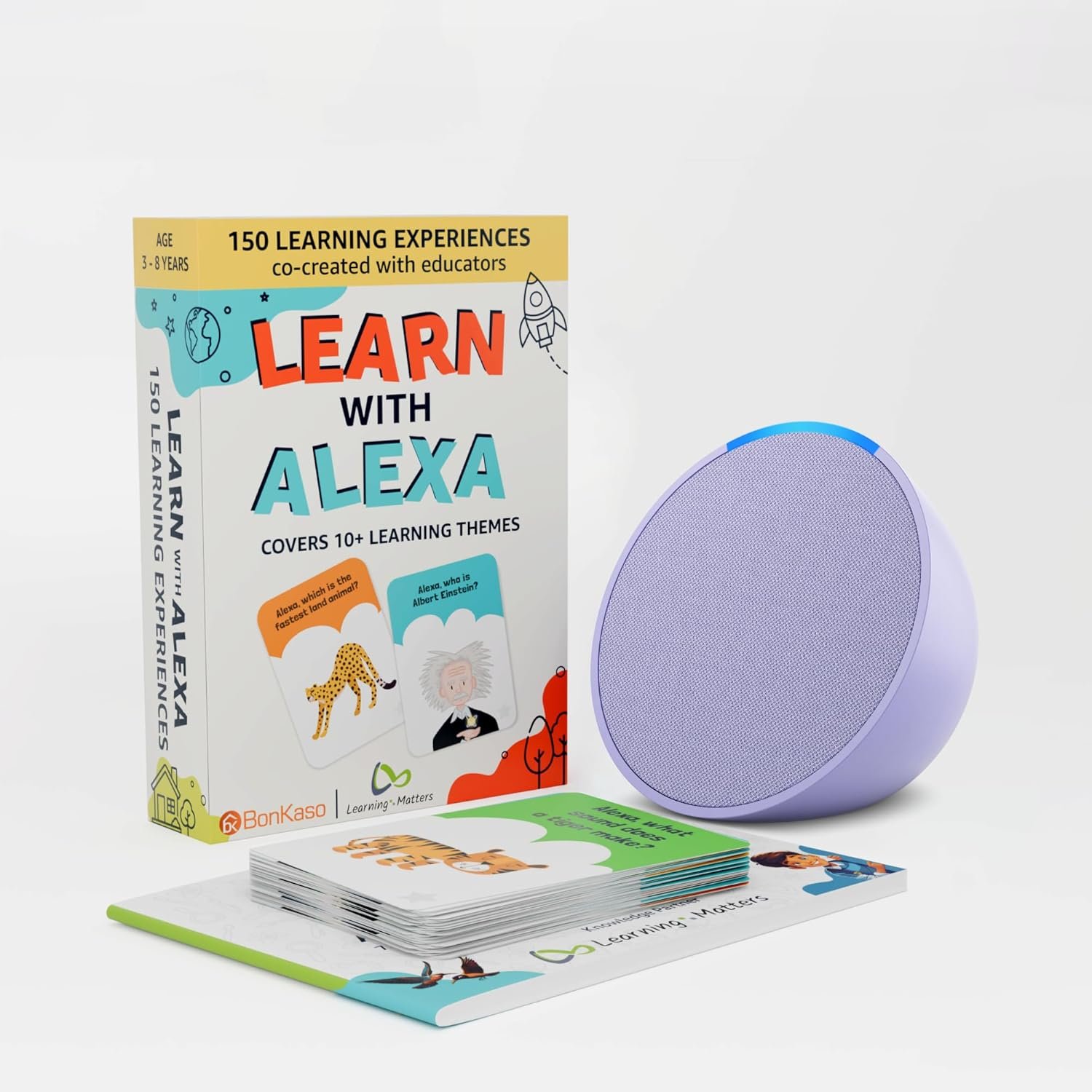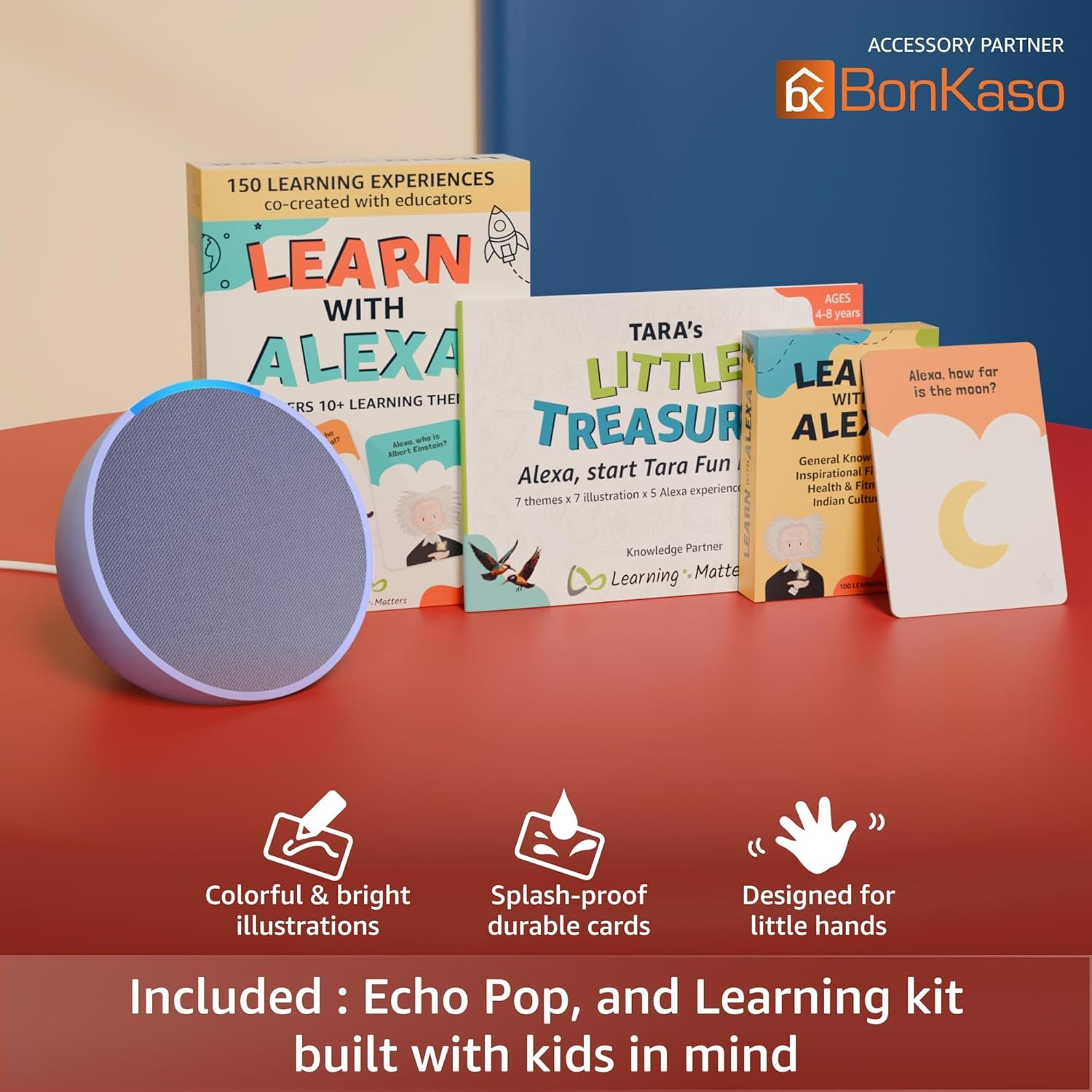 This combo contains Amazon Echo Pop (Purple) and Alexa activity kit with over 150 learning experiences.