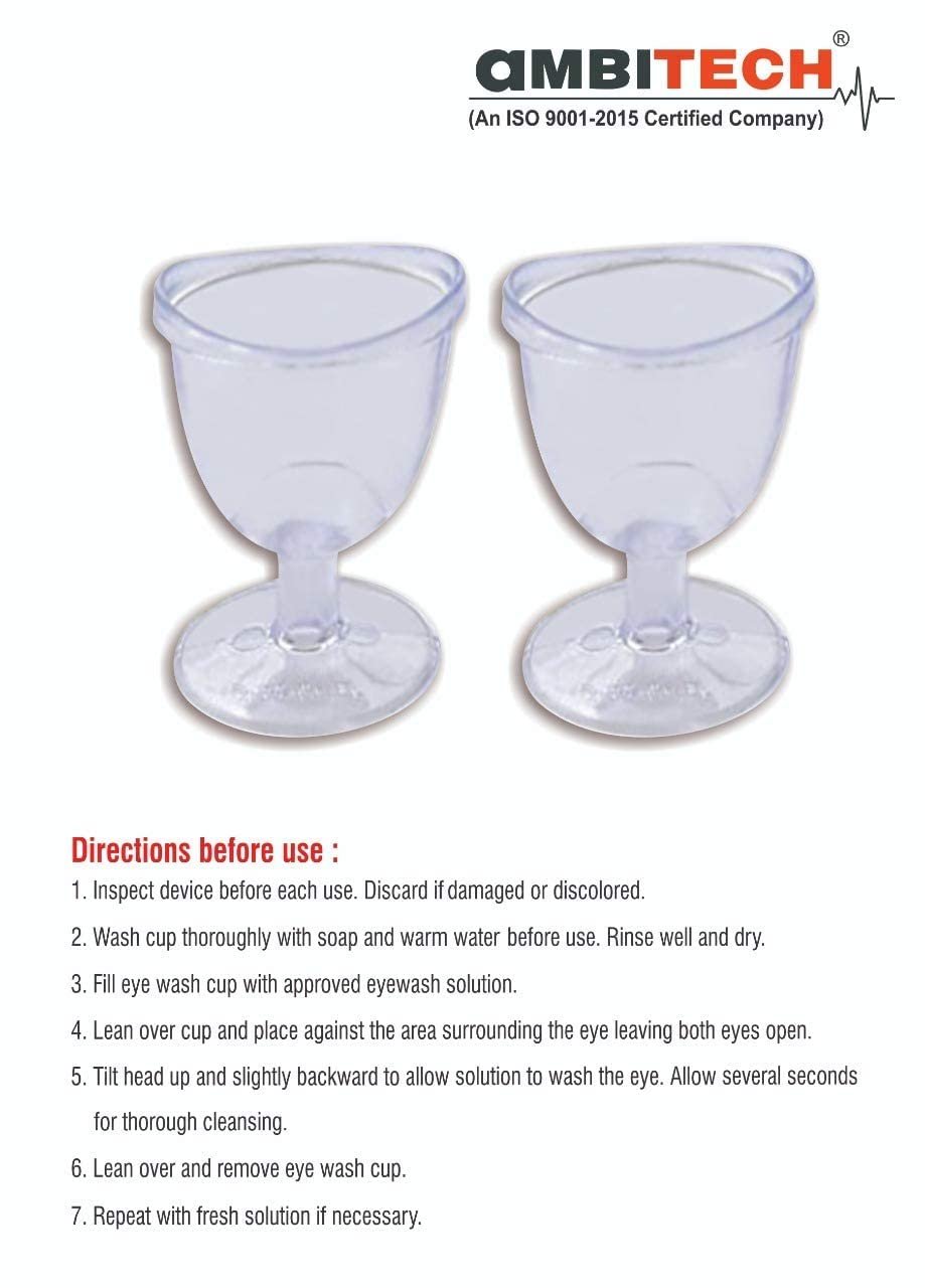 Eye wash cup is curved to fit snug next to your eye so there is no leakage