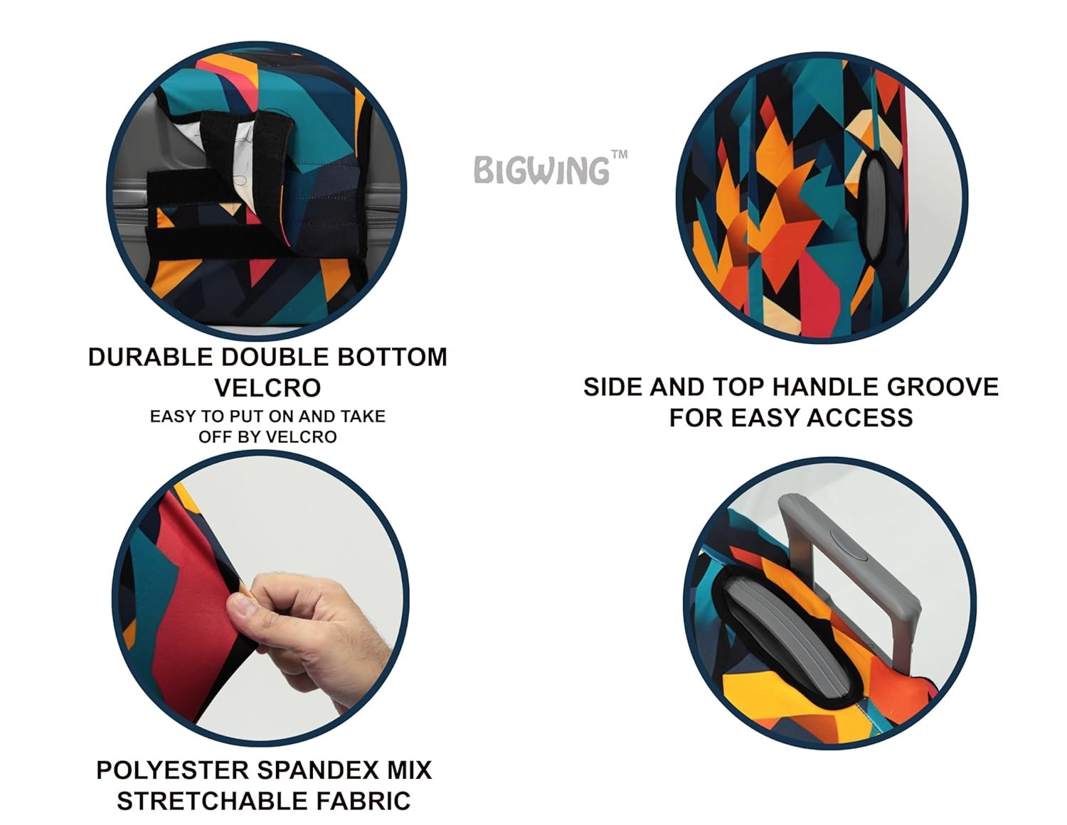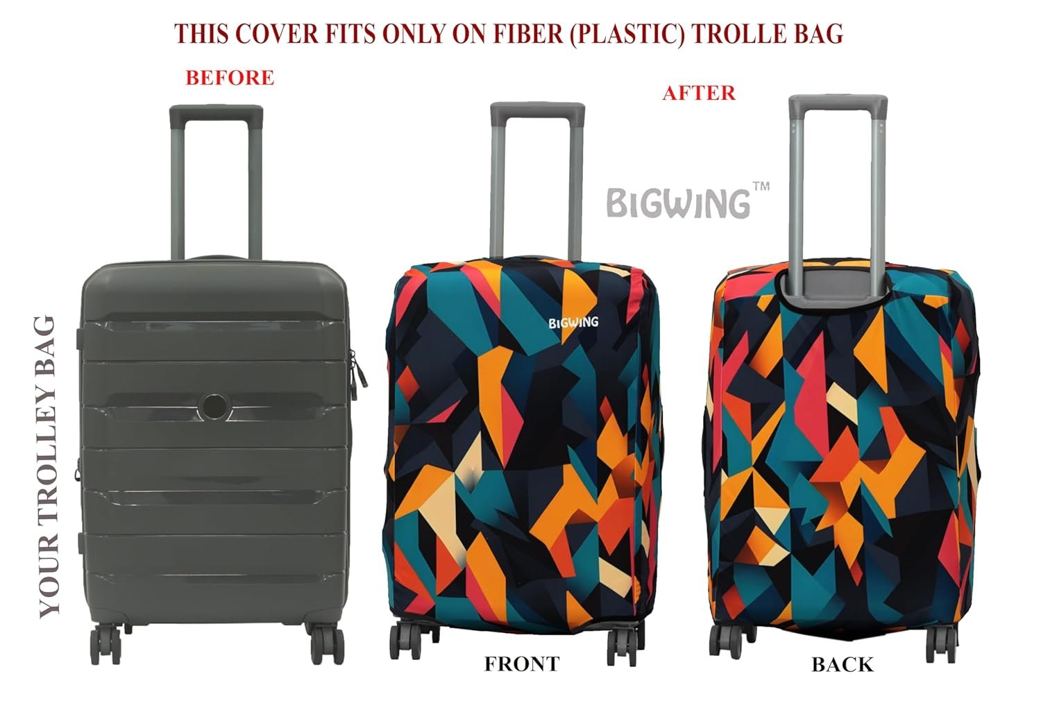 Introducing BIGWING Polyester Fabric Recyclable Eco-Friendly Trolley Bag Cover by ASPIRE ENTERPRISE! Travel In Style While Protecting Your Luggage With Our Durable, Stretchable, And Washable Trolley Bag Covers. Crafted From Premium Four-Way Stretchable Polyester-Spandex Mix Fabric, These Covers Shield Your Bags From Dust, Scratches, And Everyday Wear, Ensuring They Stay In Top Condition. Proudly Delivering a MADE IN INDIA Product, We Strive To Offer The Best Quality At The Best Price For Our Valued Customers. Dress Up Your Luggage And Travel With Confidence!