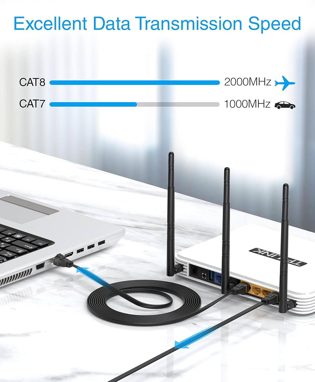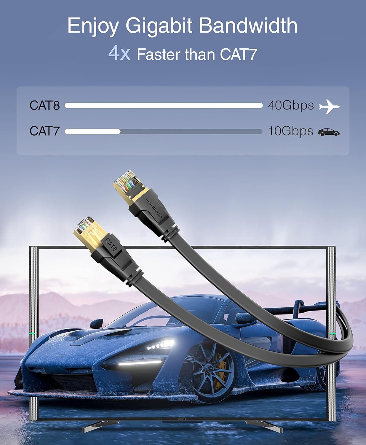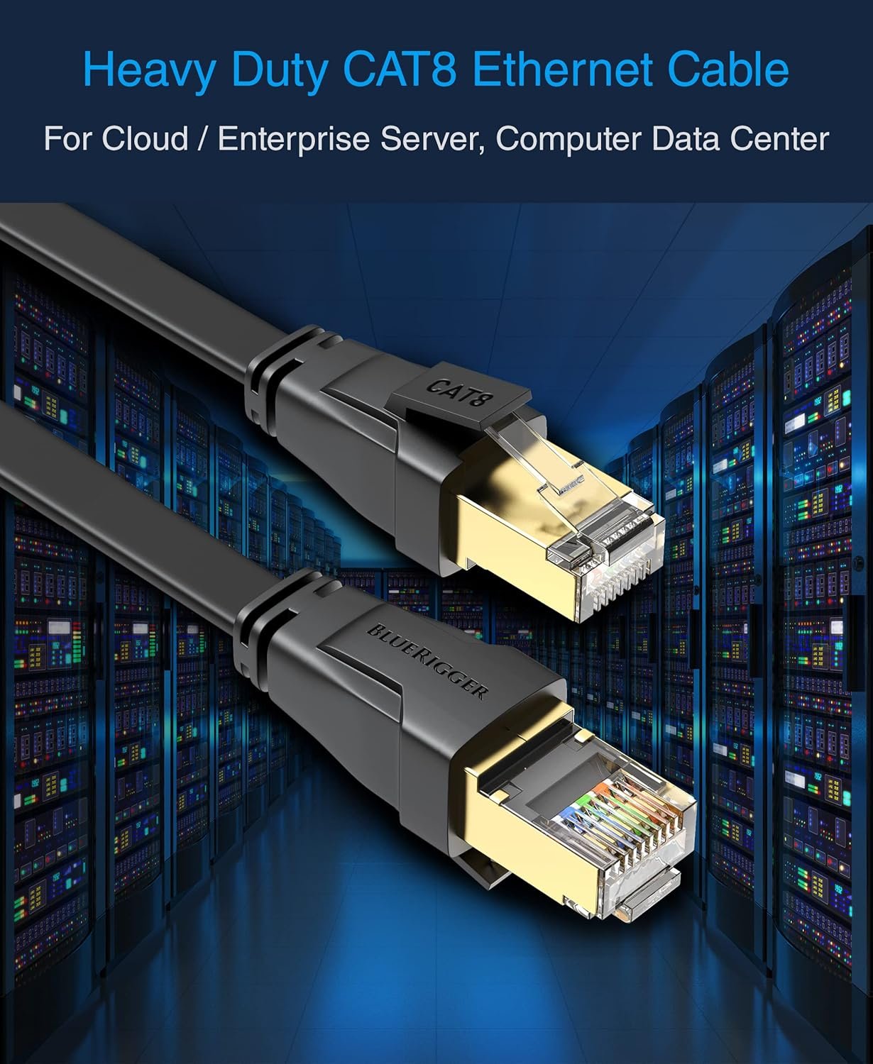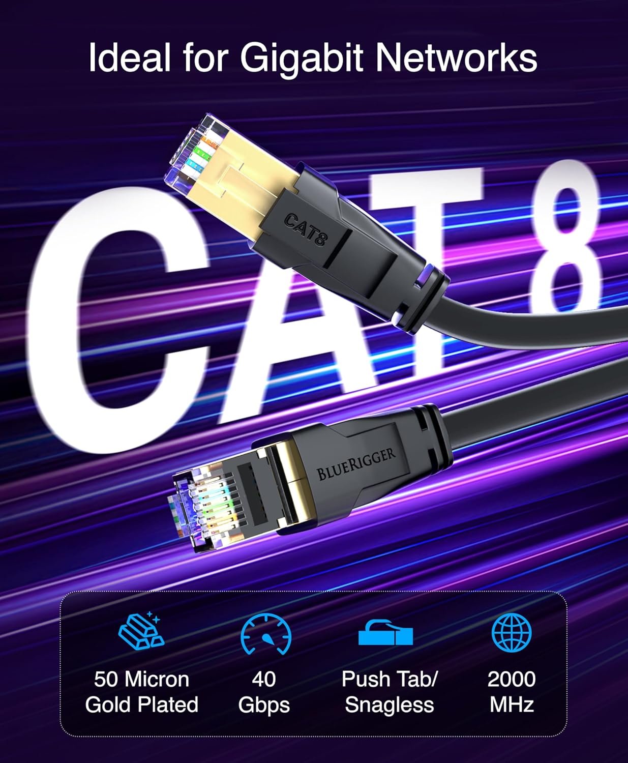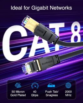 BlueRigger 40Gbps CAT8 Flat Ethernet Cable is perfect for gaming and streaming movies. Built with multiple layers to reduce inference and provide faster speed and more stable performance. The sleek flat cable design supports seamless installation for your home & office.
