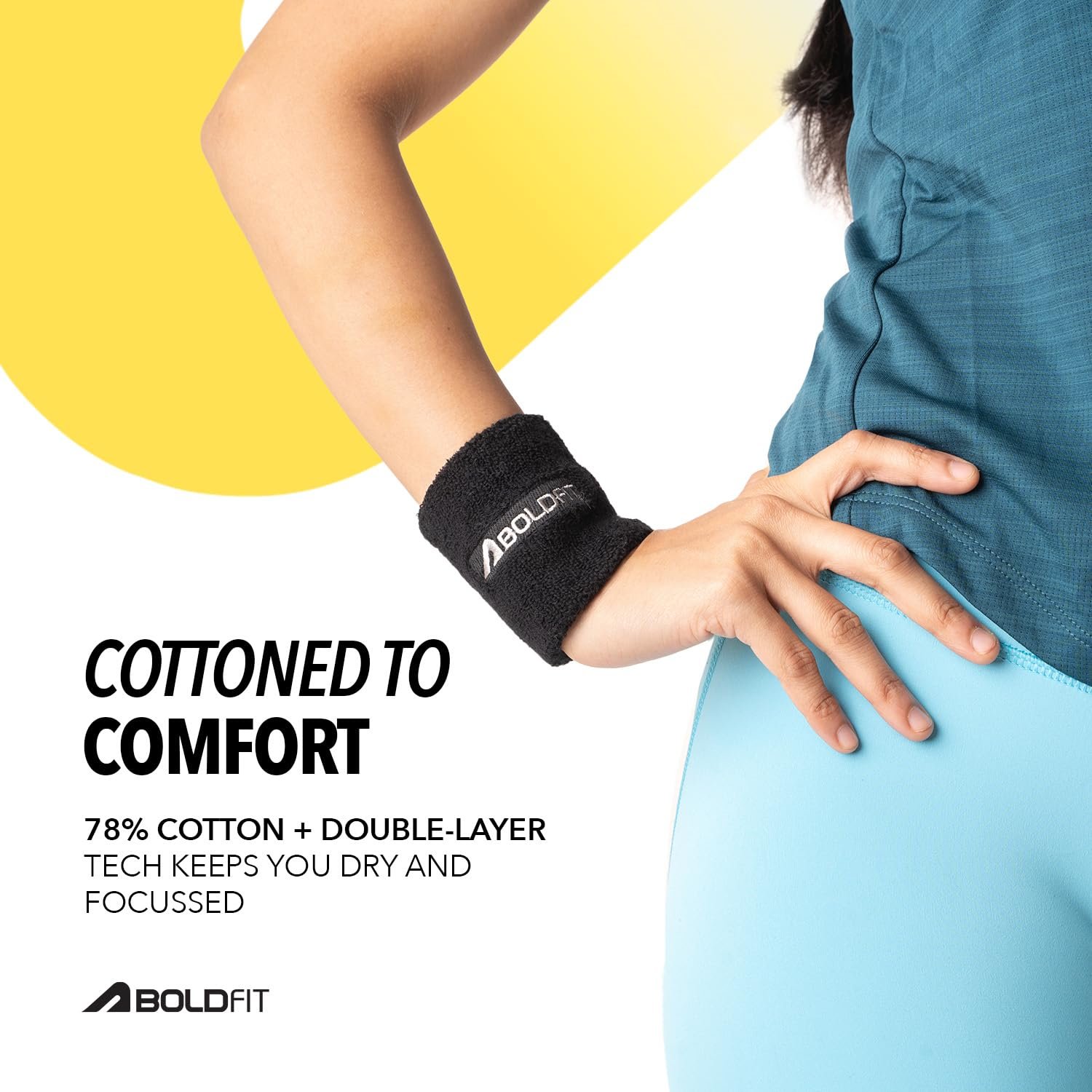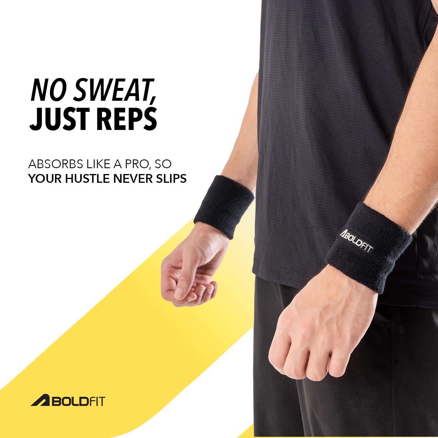 Boldfit Cotton Wrist Band for Men & Women 3 Inch – Wrist Sweat Band for Badminton Football, Basketball, Running & Athletic Sports, Sweat Absorbent Wrist Bands