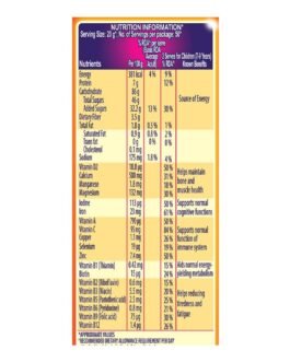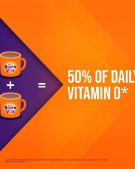 Bournvita Chocolate Nutrition Drink is a scientifically designed formula, crafted by nutritionists with a bundle of nutrients that are known to support Physical strength (Calcium, Vitamin D and Magnesium are known to maintain Bone and Muscle health); Mental Strength (Iron, Iodine and Zinc which help in normal cognitive functions); Immune strength (Vitamin C, Vitamin D, Zinc and Iron to support the immune functions). Thus, supporting strength and providing high energy. 2 serves of Bournvita provide 50% RDA of Vitamin D (Recommended Dietary Allowance requirement for children (7-9 years), ICMR -NIN, 2020). Bournvita chocolate drink to be consumed as a part of a daily balanced diet and healthy lifestyle.