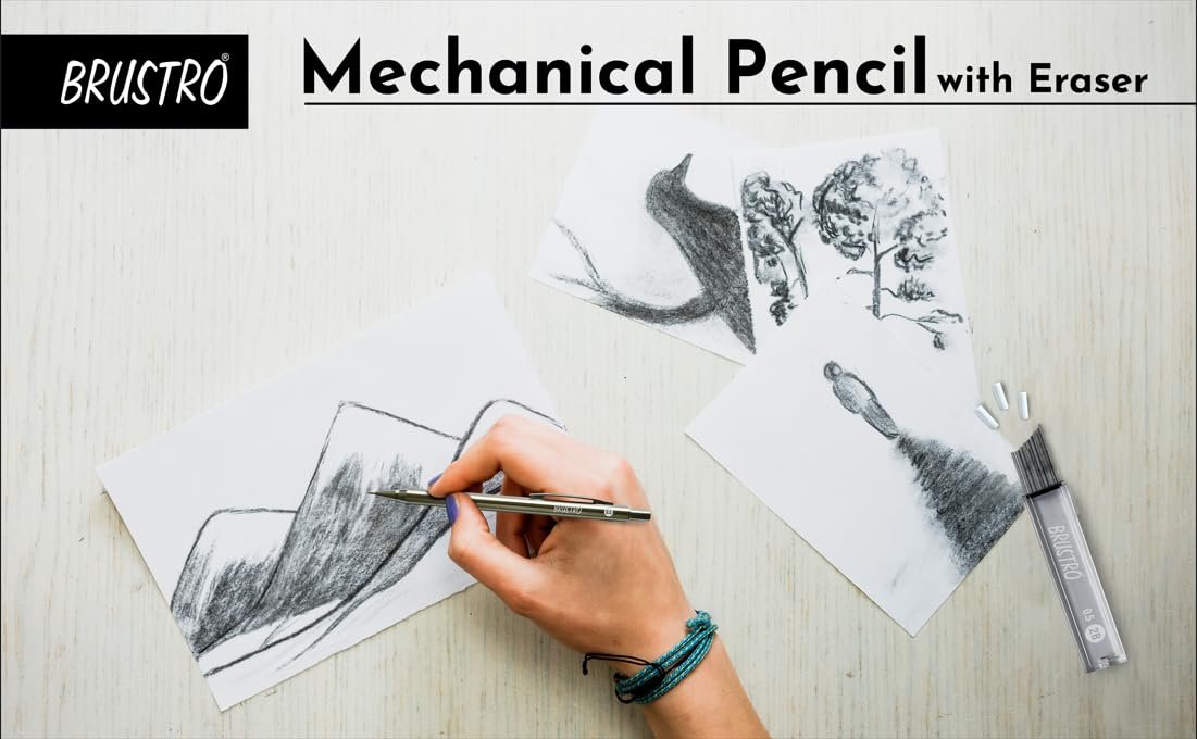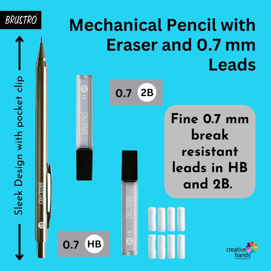 BRUSTRO Mechanical Pencil Set | HB-20 leads, 2B-20 leads,Spare eraser 8 units|Tip size 0.7 mm | Ideal for Students,Adults, Home, School, Office, Stationery Use |Writing, Sketching, Drawing,Mandala Art