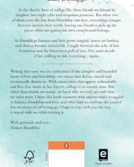 In the electric haze of college life, three friends are bound by laughter, late-night talks and unspoken promises. But when two of them cross the line from friendship into love, everything changes. Betrayal shatters their world, leaving one friend to pick up the pieces while navigating her own complicated feelings. As friendships fracture and love grows tangled, hearts are broken, and choices become irreversible. Caught between the ache of lost friendship and the bittersweet pull of love, Dev must decide if he’s willing to risk everything―again.