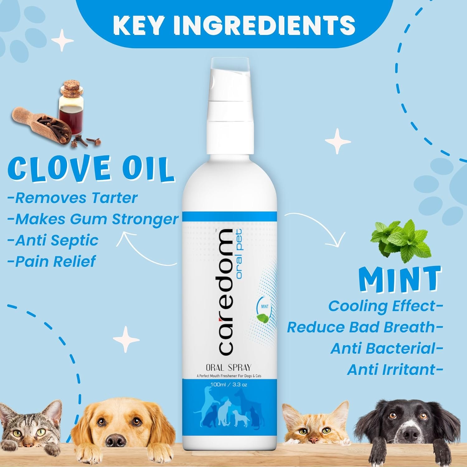 MINT & CLOVE MOUTH SPRAY FOR DOGS & CATS: A Unique blend of human-grade Mint & Clove oil extracts. It naturally balances oral chemistry & soothing irritations. It is made in India.