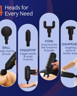 4 VERSATILE HEADS | With 4 interchangeable heads, each targeting specific muscle groups, this massager machine provides a deep muscle treatment for your entire body. No more awkward and hurried massage appointments; Comfortably treat your entire body in one go. Anytime. Anywhere.