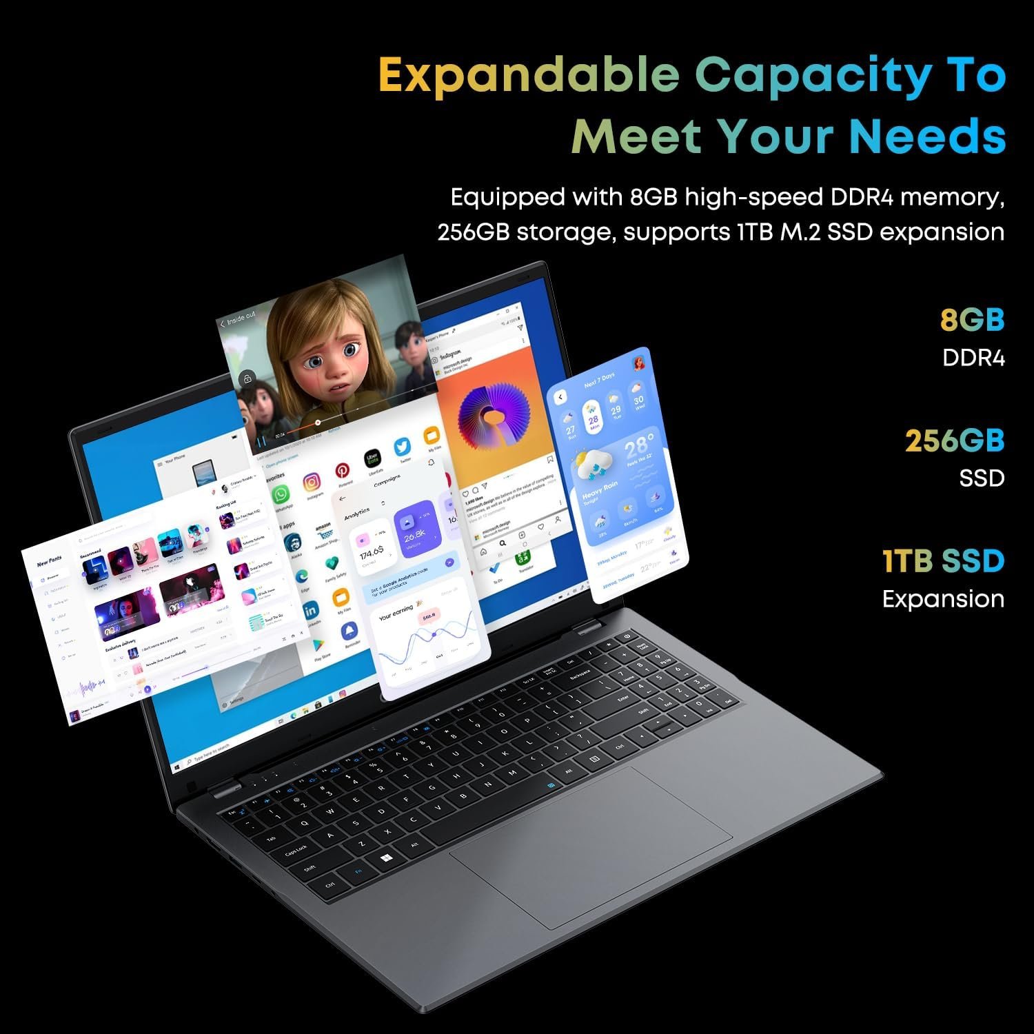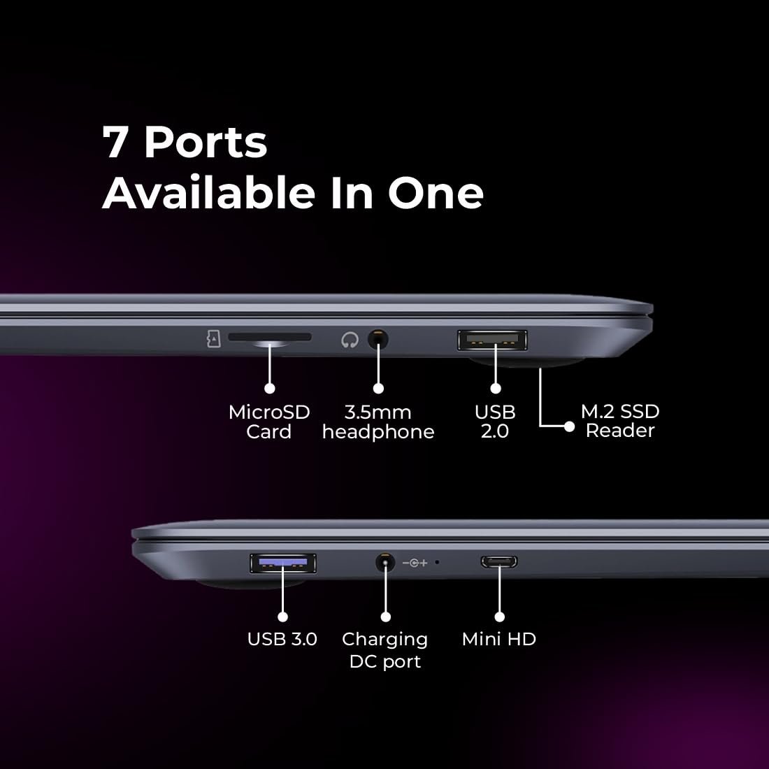 🔌【Meet Various Daily Needs】This Windows 11 laptop is with USB 3.0*2, Microphone*1, Speaker*4, Camera, Micro-HDMI port*1, high-speed M.2*1, fast charging DC port*1, 3.5mm headphone jack*1, and TF card slot*1. Supports Bluetooth 4.2 and 2.4G/5G dual-band WIFI. Meet various using needs in your daily life.