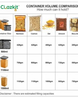 Clazkit Air Tight Modular Containers Storage Set For Kitchen, Pantry Organization, Bpa-Free, Dishwasher Safe (Pack Of 6, Black, 500 ml, Plastic)