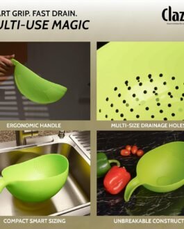 **Built-in Handle:** – Sturdy handle for easy grip and control during washing or straining, ensuring user comfort.