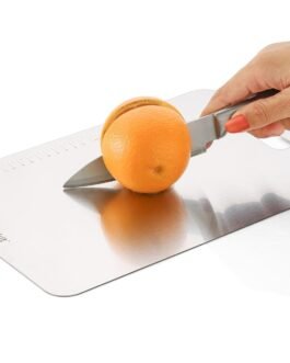 Gentle on Knives : Our stainless steel board is super-soft on knives, making it a durable and reliable choice for smooth chopping.
