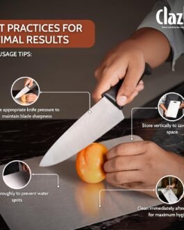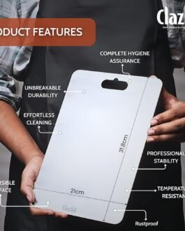 Introducing our Clazkit Stainless Steel Chopping Board – the epitome of durability, hygiene, and elegance in your kitchen. Crafted with precision and designed for both professional chefs and home cooks, this cutting-edge chopping board is an indispensable tool for your culinary adventures. Key Features: Unmatched Durability: Constructed from high-grade stainless steel, this chopping board is engineered to withstand the test of time. It resists corrosion, stains, odors, and is sure to endure the daily rigors of chopping, slicing, and dicing. Hygienic and Non-Porous Surface: The non-porous surface of our stainless steel chopping board prevents the absorption of liquids, odors, or bacteria, ensuring a consistently clean and safe food preparation environment. Knife-Friendly Surface: The smooth and non-abrasive surface of the stainless steel board protects your knives from dulling, keeping them sharp and ready for precise cutting tasks. Easy to Clean and Maintain: Effortlessly maintain a spotless kitchen with this easy-to-clean chopping board. Simply wipe down the surface with a damp cloth or wash it with mild soap and water. The stainless steel material is also dishwasher safe for your convenience. Versatile Design: The sleek and modern design complements any kitchen aesthetic, making it an attractive addition to your cooking space. Its versatile size and design make it ideal for various food preparation tasks, from chopping vegetables to slicing meats. Built-In Stability: Equipped with non-slip silicone feet, this chopping board offers excellent stability during use, ensuring a safe and steady cutting surface. Invest in the best with our Clazkit Stainless Steel Chopping Board – a kitchen essential that promises longevity, hygiene, and impeccable functionality for all your culinary endeavors. Elevate your cooking experience and bring a touch of sophistication to your kitchen with this exceptional chopping board.