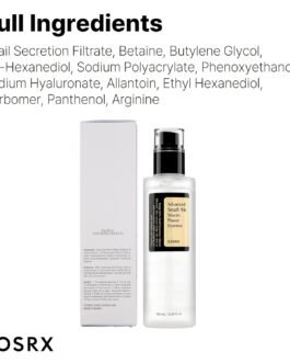 Snail Mucin: 92% of Snail Secretion Filtrate helps to protect the skin from moisture loss while improving skin elasticity. Snail mucin helps repair and soothes red, sensitized skin skin after breakouts by replenishing moisture.Cosrx snail mucin products are 100% cruelty free, causing no harm to any animals in the process.