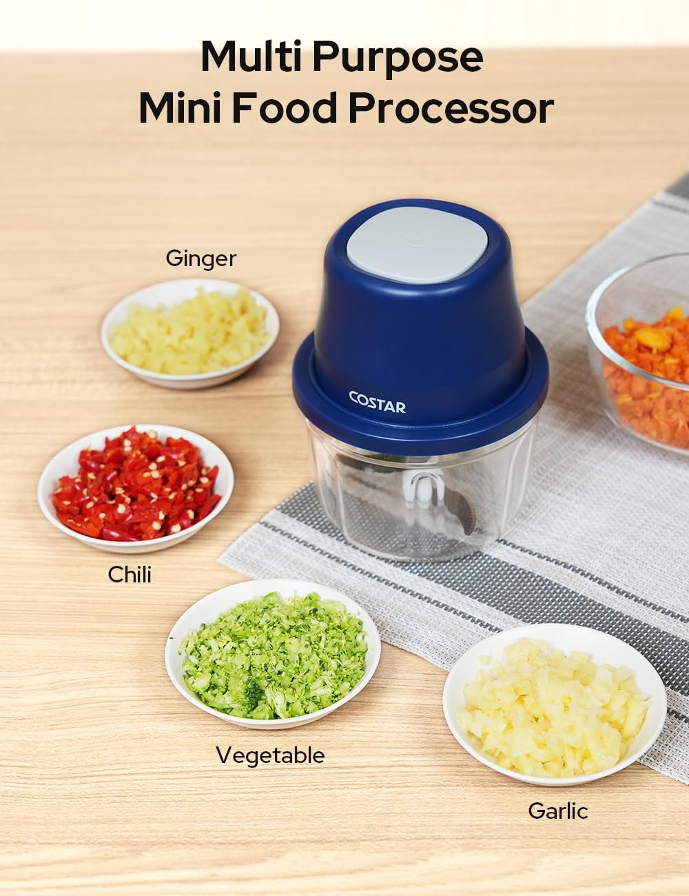 🎁Perfect Gift: Chopping vegetables and spices in daily cooking wastes too much time, Costar rechargeable mini food chopper can free your hands and make cooking easier. Perfect for anyone who loves to cook, the busy mom, or as a housewarming gift.