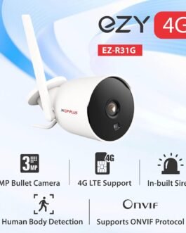 The CP PLUS EZ-R31G is a rugged 3MP outdoor 4G bullet camera engineered for high-performance surveillance without internet cables. This wireless CCTV camera runs entirely on 4G SIM connectivity, making it ideal for outdoor locations like gates, farms, warehouses, and construction sites. Equipped with a powerful lens and 18 IR LEDs, it delivers crystal-clear 3MP video and up to 25 meters of night vision. The camera intelligently detects motion and human activity, sending accurate push alerts through the ezyLiv app. With built-in two-way audio, you can communicate live or warn intruders. The automatic siren is triggered during suspicious activity for added protection. Local video storage up to 256GB is supported via microSD card, ensuring complete privacy and control. ONVIF support makes it compatible with most NVRs and third-party platforms. If you need a SIM-enabled, smart 4G outdoor camera for areas with no broadband, this is your go-to solution.