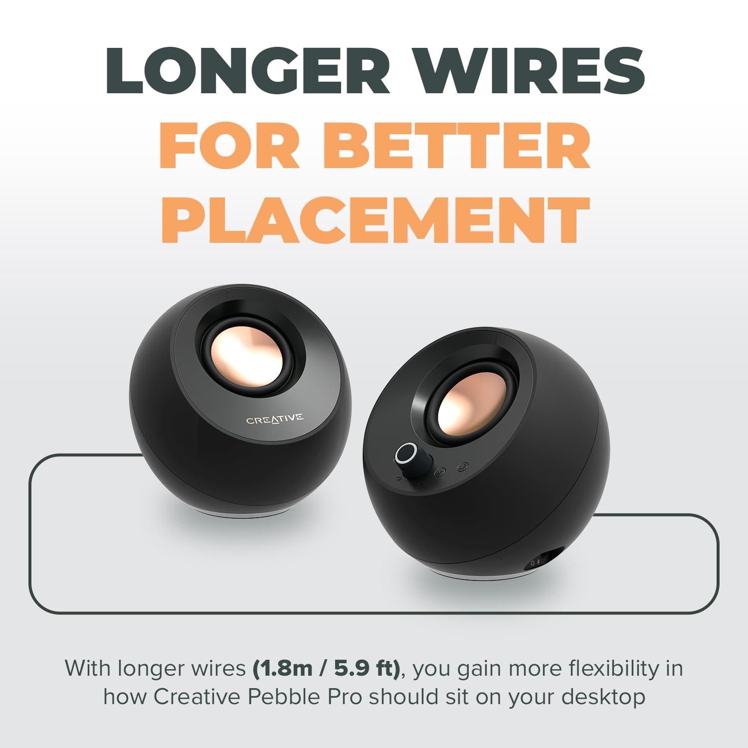 Creative Pebble Pro (Black) Minimalist 2.0 USB-C Computer Speakers with Bluetooth 5.3 and Customizable RGB Lighting, Clear Dialog and BassFlex Tech, USB Audio, Headset Port, for PC and Mac