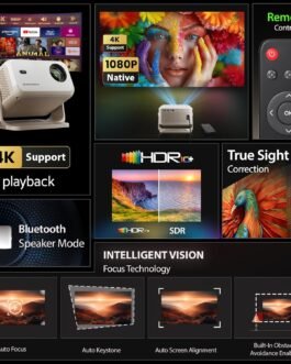 ✅【Ultra-Sharp Stunning Native 1080P – 4K Home Projector】: Enjoy stunning visuals 1080p resolution with 4K support on your home projector. Perfect for movies, gaming, or presentations, it ensures crystal-clear, high-quality images for an immersive viewing experience.