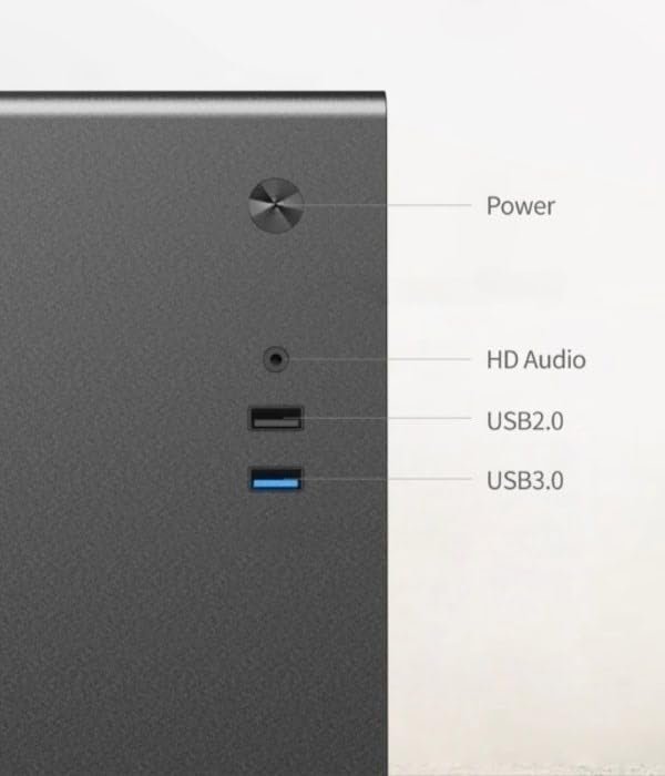 Front Ports: Includes 1 USB 3.0, 1 USB 2.0 Type-A, and a headphone/microphone combo pin for convenient access.