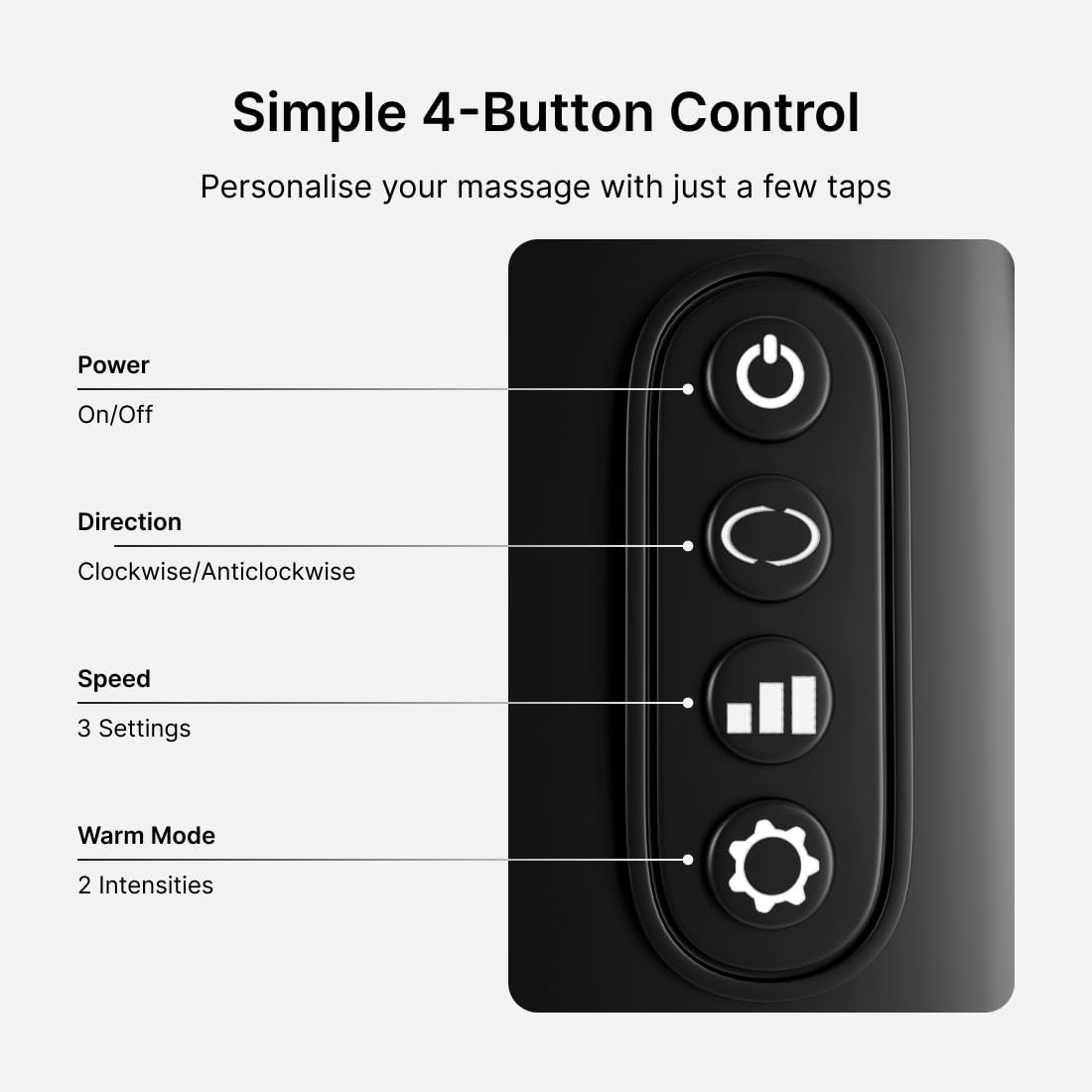 WARM THERAPY – Offers two warm settings (40°C and 45°C) for targeted relief. Auto shut-off after 10 minutes ensures safety and prevents overheating.