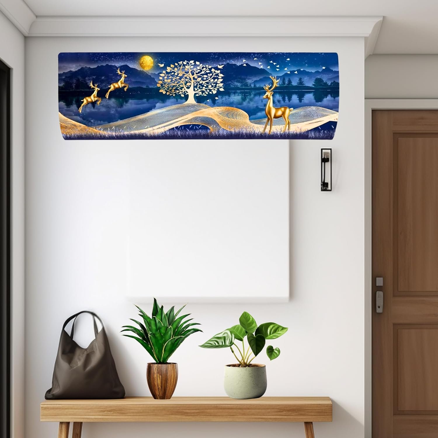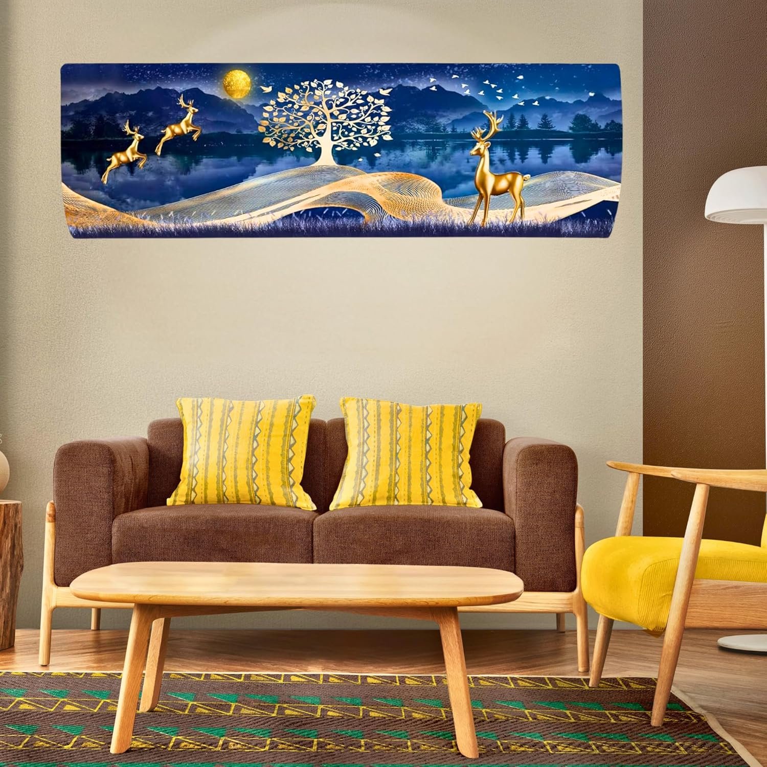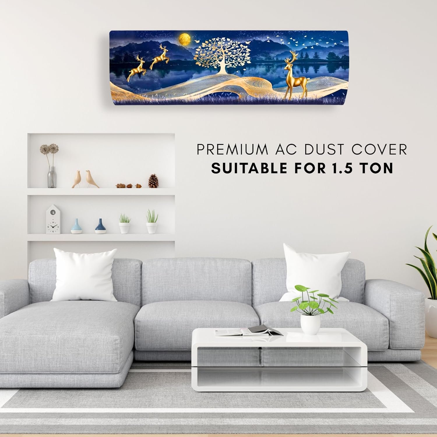 Da Anushi Printed Split Ac Cover Indoor Unit For 1.5 Ton Capacity AC, Inner Unit Ac Cover, All Weather Cover/Attractive Digital Prints/Dustproof/Water Resistant Split Ac Cover (Gold Deer)
