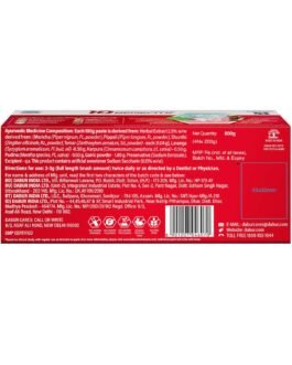 DABUR RED PASTE has a clinically proven formula that fights against 7 DENTAL PROBLEMS 1) TOOTHACHE, 2)CAVITIES, 3) plaque, 4) germs, 5) bad breath, 6) yellowing, and 7) bleeding gums. It is fluoride free and made with 13 potent ayurvedic ingredients including Pudina Satva that provides fresh breath, Laung ka Tail that relieves toothache, Shunthi that has anti-inflammatory and antibacterial properties, and Tomar Beej that has antiseptic and antibacterial properties. It is clinically shown to provide a remarkable 35% improvement in oral care hygiene compared to regular toothpaste and provides complete protection for the entire family.