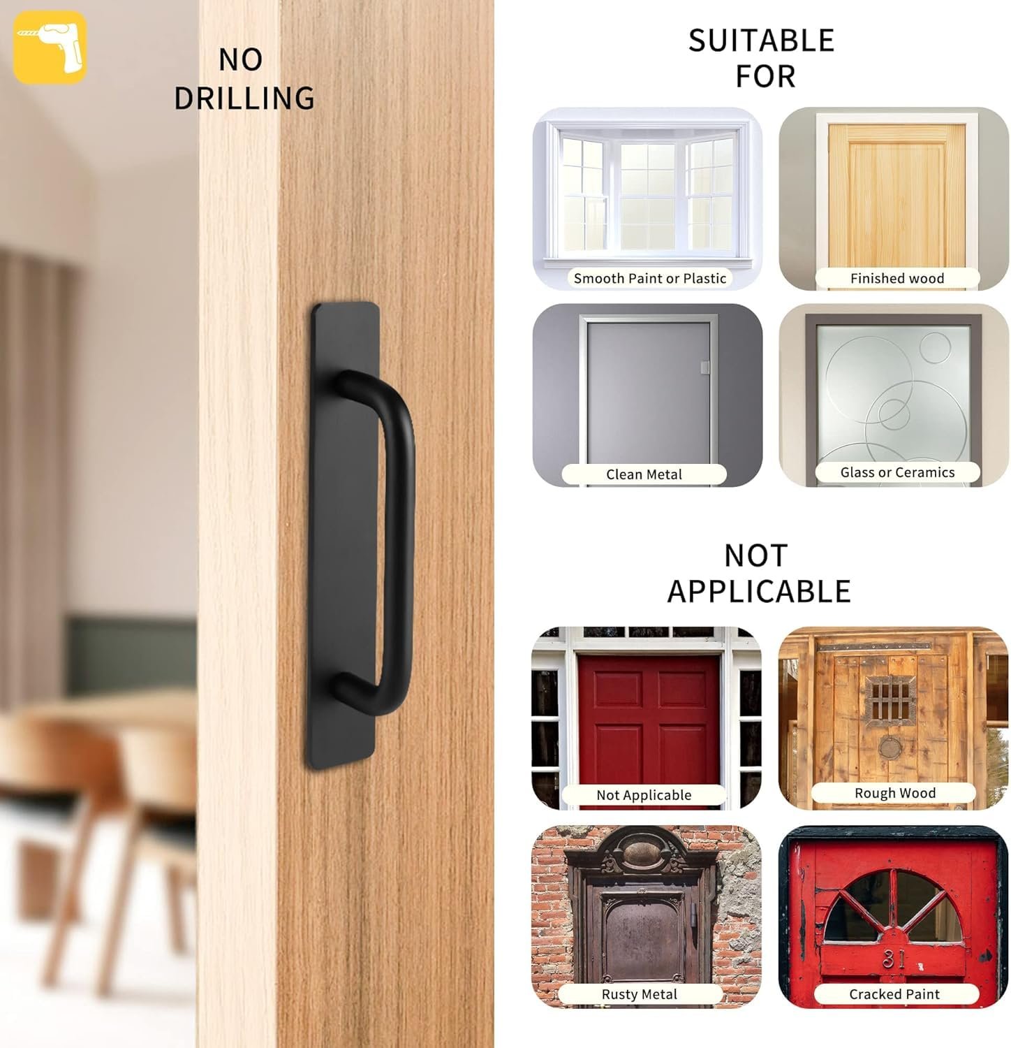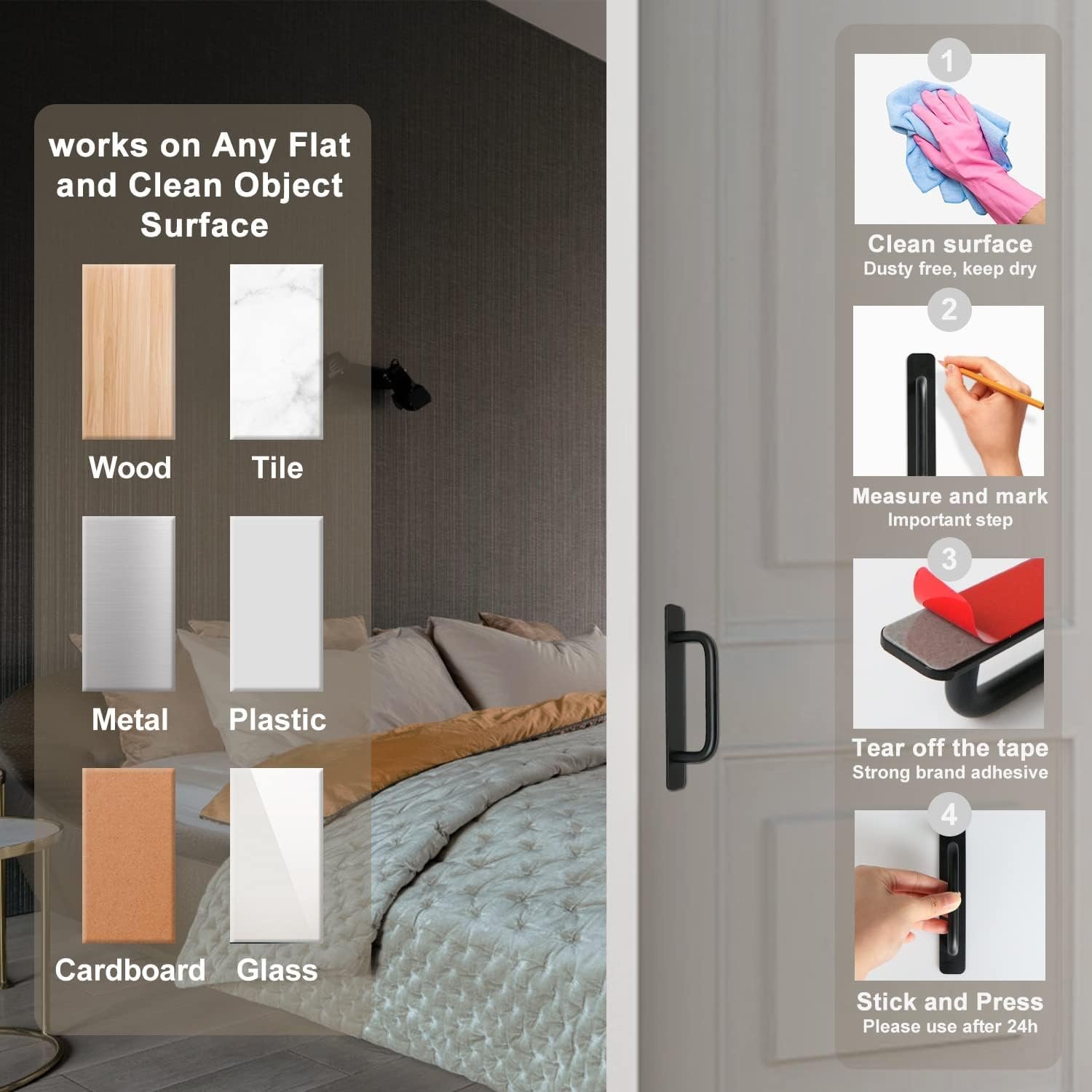 Self-Adhesive: Equipped with strong 3M adhesive, can firmly stick to most doors. No drilling needed.