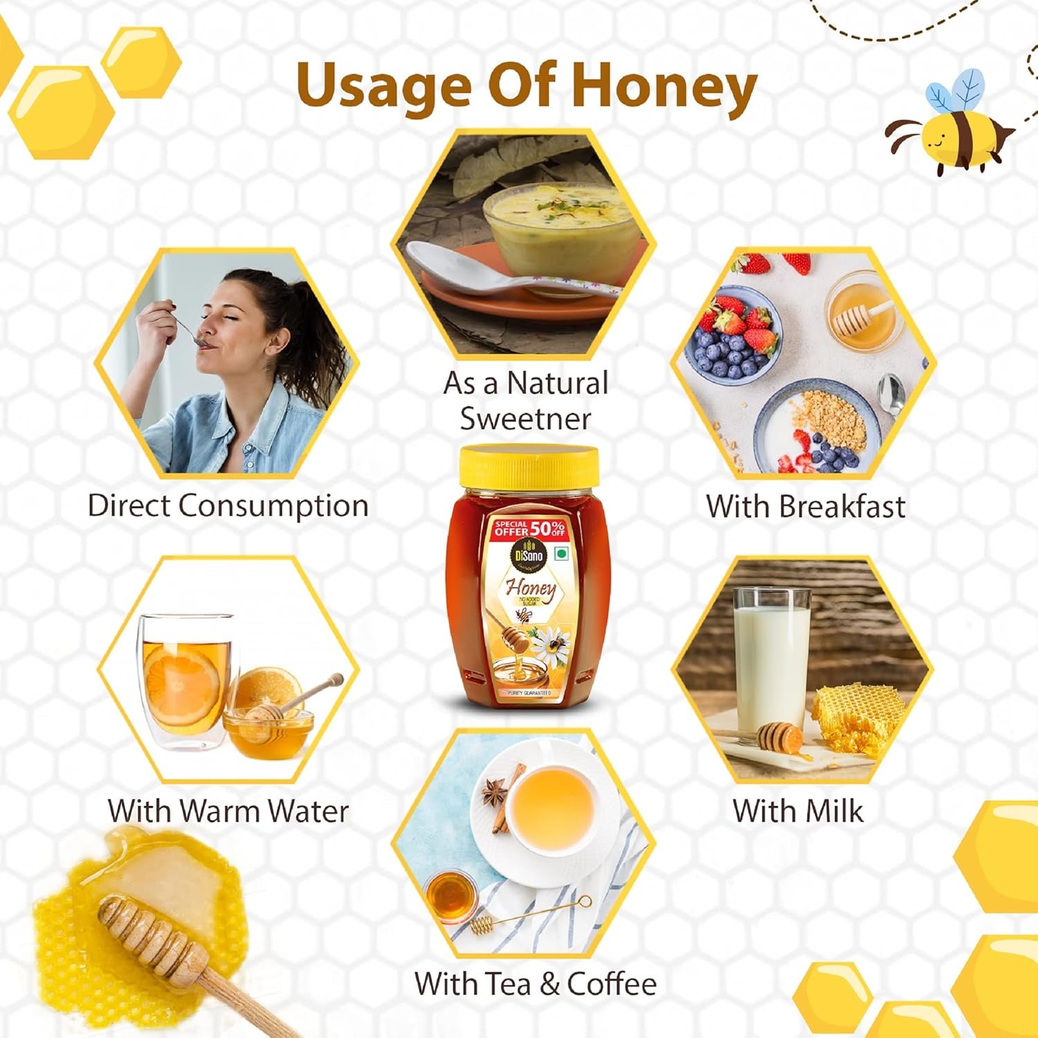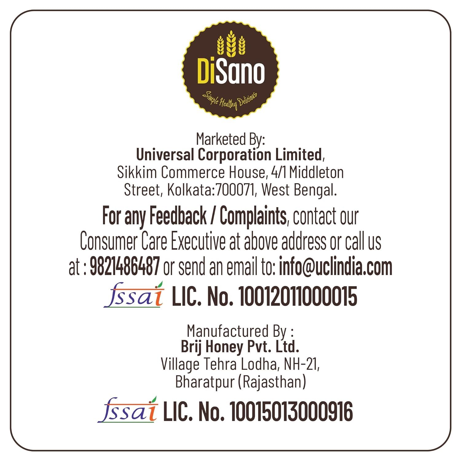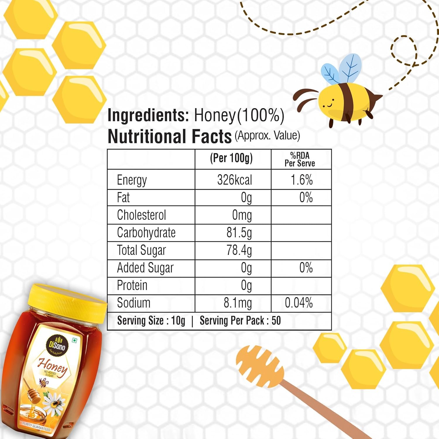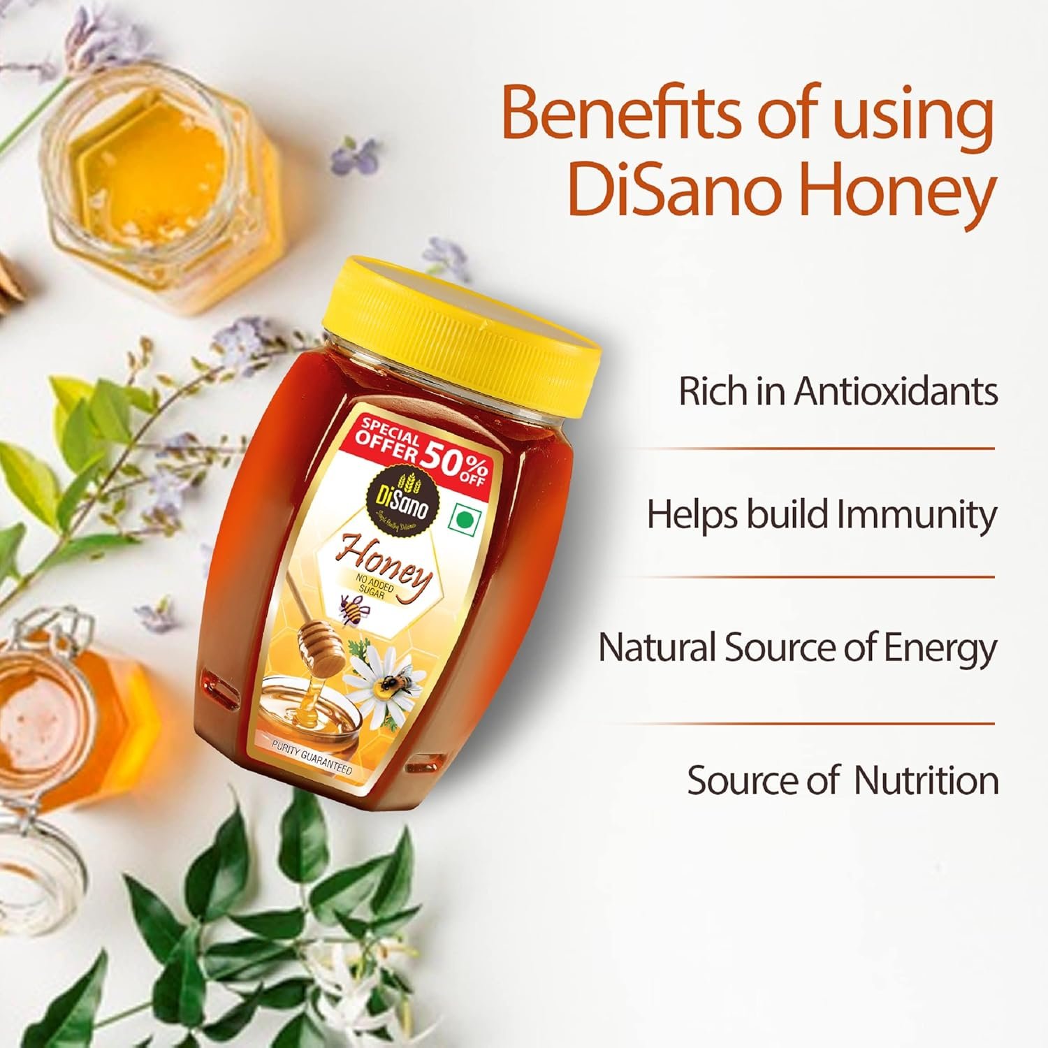 DiSano Honey is a pure honey with no added sugar. Its 100% Pure and full of health benefits.Honey is considered to have numerous nutrients that offer us immense health benefit. It Helps to manage weight, helps improve digestion & metabolism, Helps manage a healthy and active lifestyle. Honey conforms strictly with all requirements of FSSAI and international norms of Purity. Add Disano Honey with warm water and consume daily to see visible benefits.
