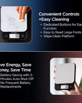 USER-FRIENDLY WITH TARE FUNCTION: Enjoy effortless usability with intuitive buttons and a clear LCD display that allows quick and easy reading of measurements. The Zero/Tare function resets the scale to zero after adding a container, ensuring precise ingredient measurements and simplifying your cooking process. Also, you can easily convert between grams (g) and pounds (oz) to accommodate diverse cooking preferences