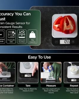PREPARING BALANCED & NUTRITIOUS MEALS: Ensure the accuracy and healthiness of your recipes with our electronic Kitchen Scale. Precise ingredient measurements help maintain consistency and portion control, essential for preparing balanced and nutritious meals. Whether baking, cooking, or portioning ingredients, this Digital Kitchen Scale helps achieve the desired taste and texture while promoting healthy cooking practices with unique culinary creations.