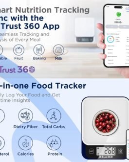 BLUETOOTH KITCHEN SCALE: Equipped with smart Bluetooth technology, this connects to the free Dr Trust 360 app (available for iOS and Android) easily. Once paired, you can control core functions like tare, unit conversion, and display time remotely from your phone. Real-time data syncing allows for accurate tracking and effortless adjustments while cooking.