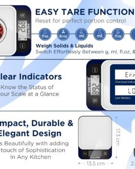 SLEEK, DURABLE & TRAVEL-FRIENDLY DESIGN: Crafted for daily use, this kitchen scale is ultra-slim and lightweight. The large LCD screen ensures clear readability, even in dim lighting. It is easy to store in a drawer or carry in a bag. Whether you’re cooking at home, in a compact space, or prepping on the go—this scale fits seamlessly into your routine without taking up space or compromising on performance. Ideal for small kitchens or travel.