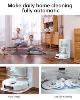 【Fully Automated Cleaning】: Automatic dust collection, mop-cleaning and -drying, water-refilling, solution-adding, fast mapping, and path-planning all combine to make fully automated home cleaning a reality. The convenient auto-empty system utilizes our exclusive DualBoost 2.0 system to blow air into the robot’s dust box and vacuum it into a 3L dust bag, giving you up to 60 days of automatic, hands-off cleaning.