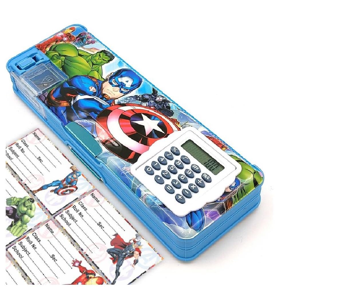 ECLET Pencil Box for Kids with Inbuilt Calculator and Designed Art Plastic Pencil Box (Set of 1, Light Blue) Any ramdon Design Will Send
