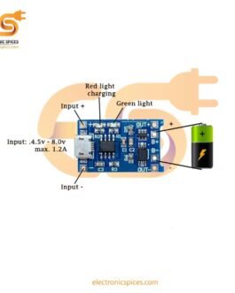 The TP4056 1A Li-Ion Lithium Battery Charging Module – Mini B USB is a 3.7V lithium battery charger module has onboard Mini USB interface. With Mini-USB onboard connector, you can directly connect to computer USB port for battery charging. If USB is not available you can use an external source voltage at IN+/IN- pads, great for DIY projects. It is small size and lightweight.