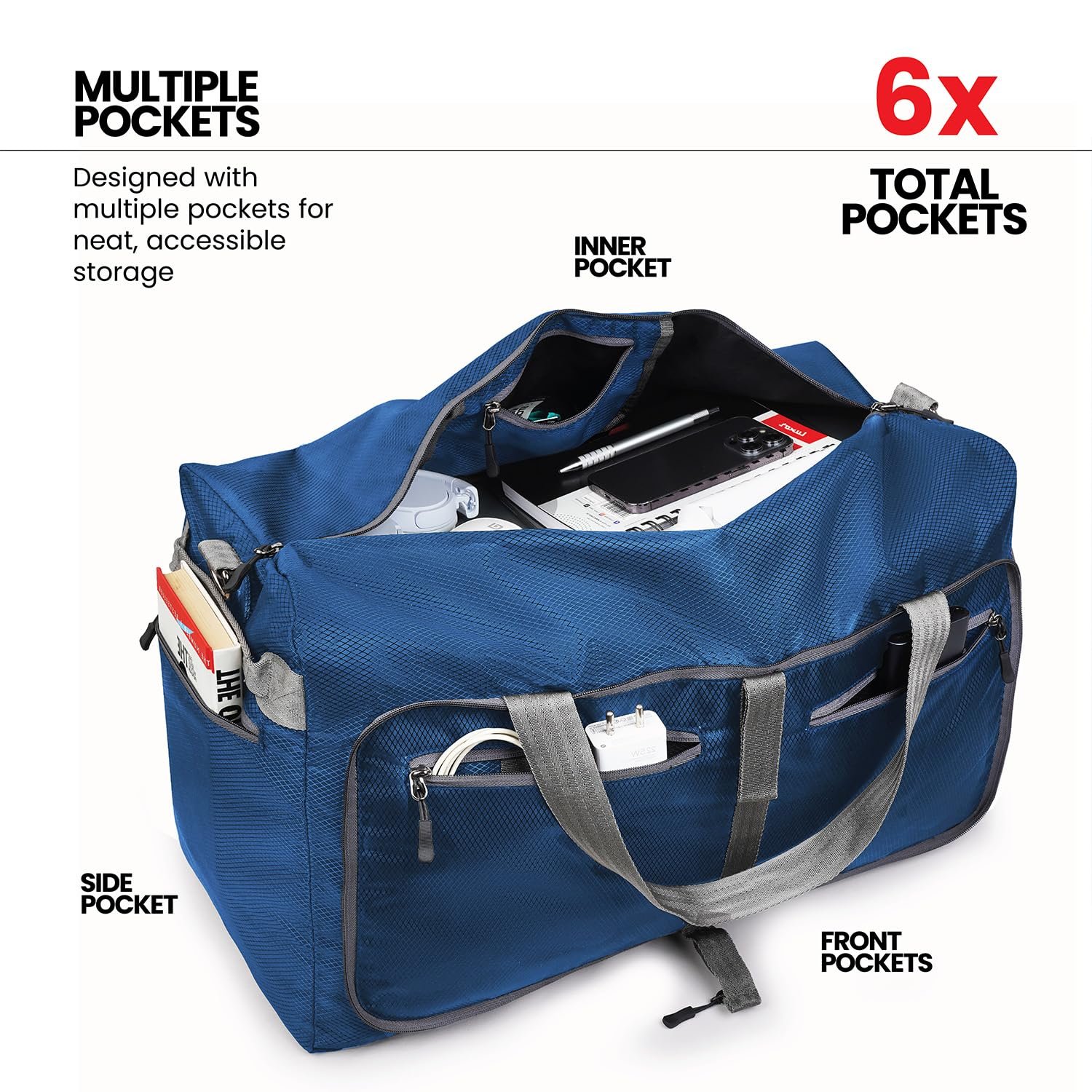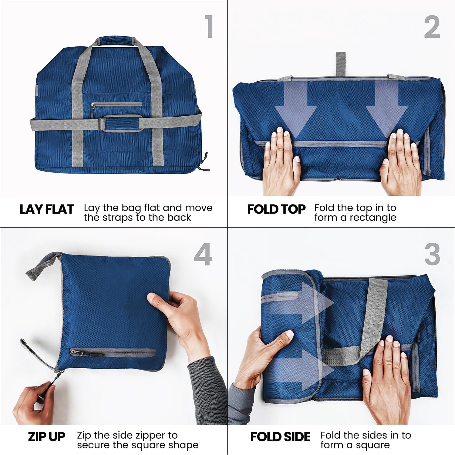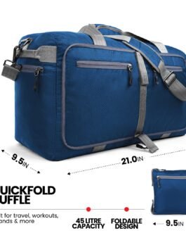 FOLDABLE AND SPACIOUS: Capacity 45L, Unfolded Size: 21x12x9.5 inch, Folded Pouch Size: 9.5×9.5 inch