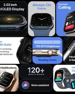 ULTRA-BRIGHT 2.02” AMOLED DISPLAY FOR CRISP VISIBILITY: Enjoy stunning visuals on a large 51.3mm (2.02”) always-on AMOLED display with 750 NITS brightness and 240×296 resolution. premium smart watch for men with crystal-clear readability even under bright sunlight.