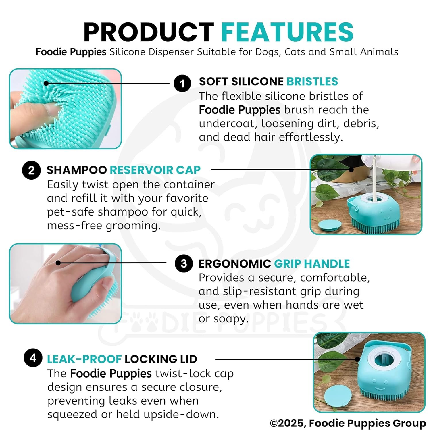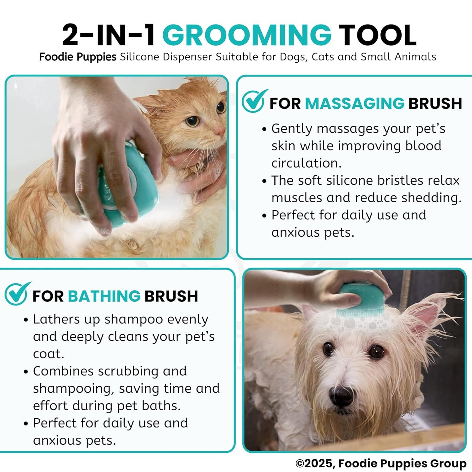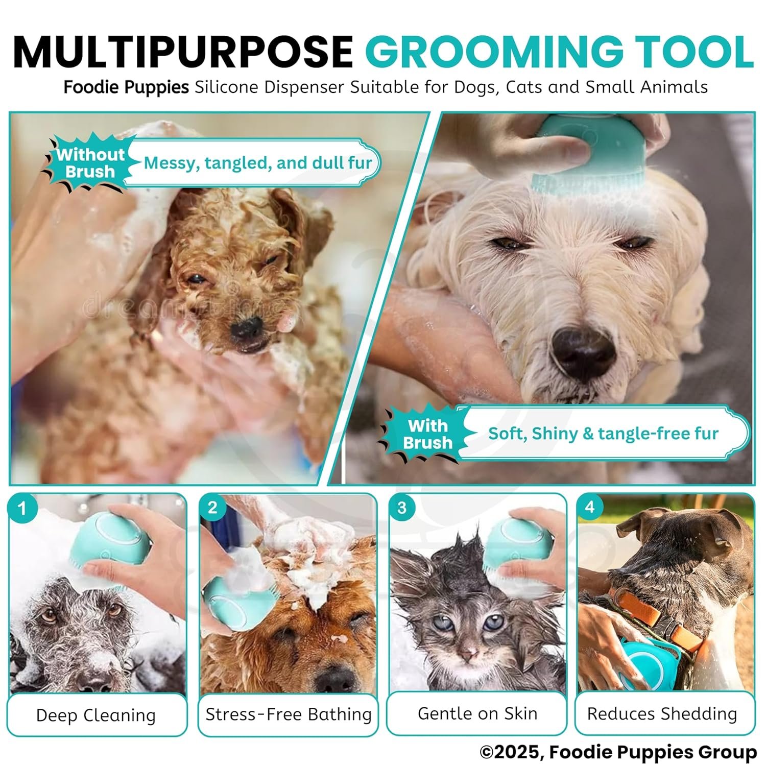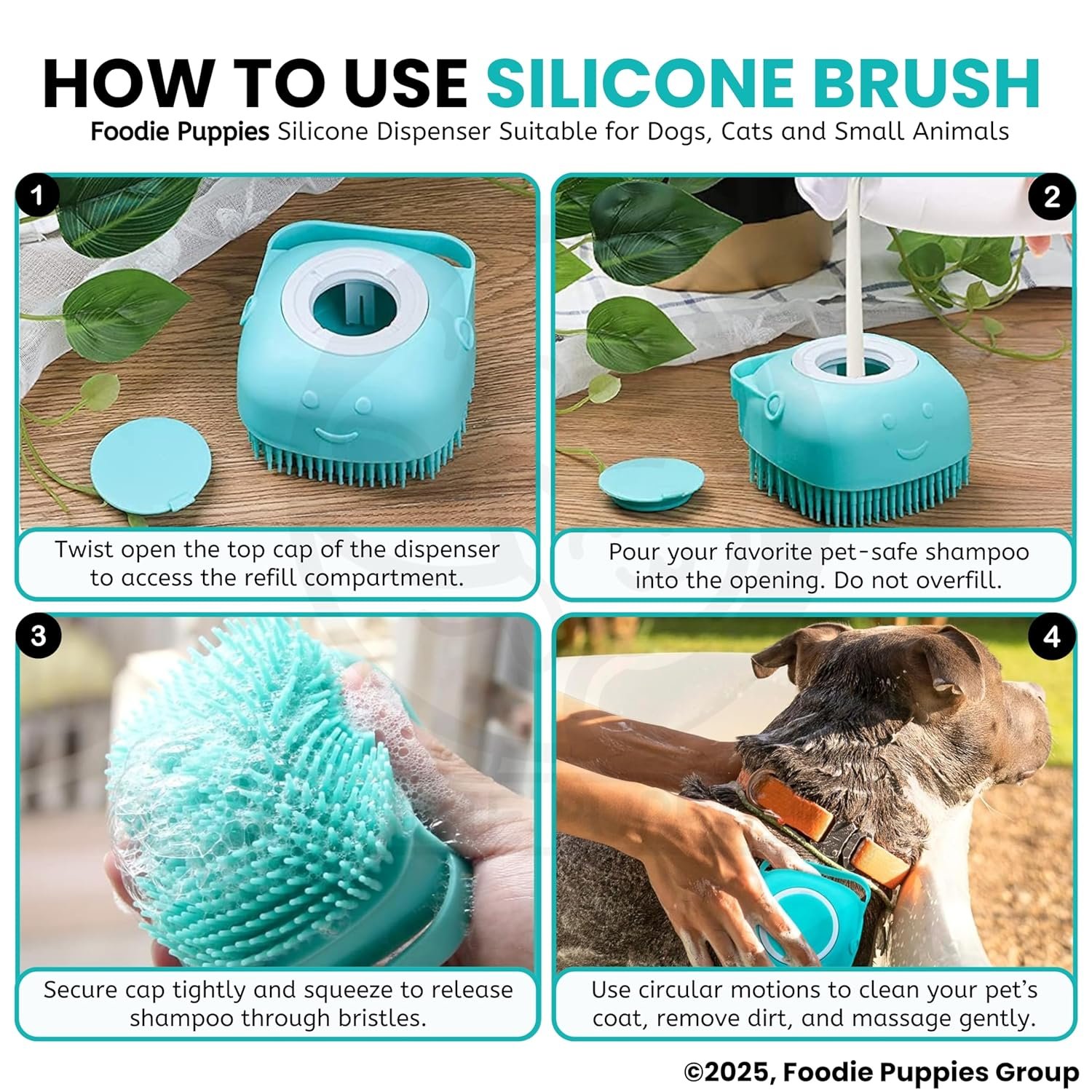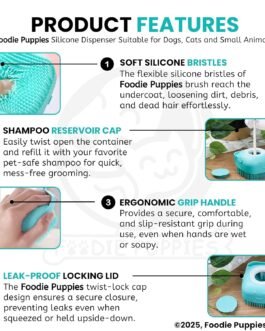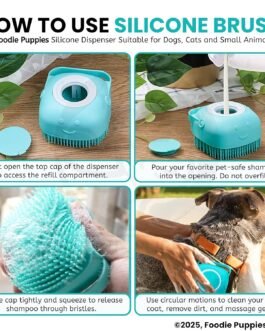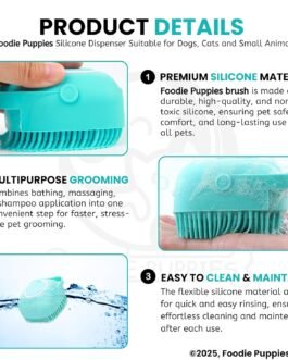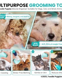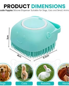 【Soap Dispenser Scrub Brush Dog】– Our dog shampoo scrubber has a dispensing design that makes it easier to get dogs soaped up, and also massages them at the same time. (If the shower gel is too viscous, you can also add an appropriate amount of water to avoid waste and at the same time better clean your pet.)
