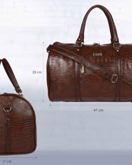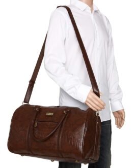 Fur Jaden Brown Textured Leatherette Stylish & Spacious Weekender Duffle Bag for Travel for Men and Women